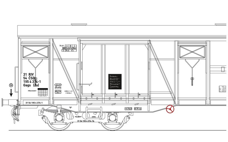 Obtisk na zavřený vůz ČSD Gags(Za) 31 54 195 4 374-1