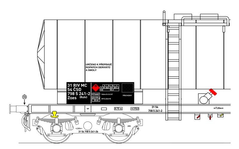 Obtisk na cisternový vůz ČSD Zaes/Rahi 31 54 798 5 241-2