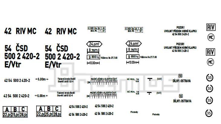 Obtisk na otevřený vůz z 80.let ČSD E/Vtr 42 54 500 2 420-2