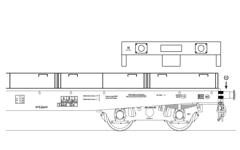 Obtisk na plošinový vůz ČSD Paon 21-54-383 2553-6, vůz s bočnicemi