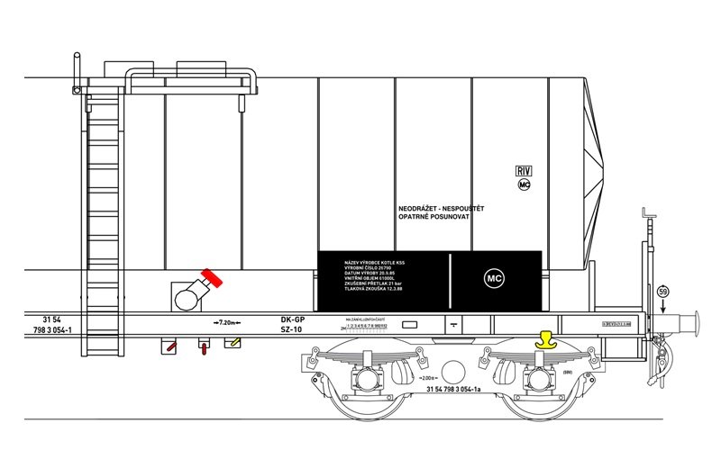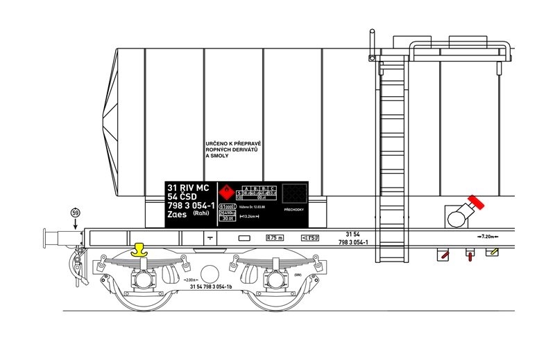 Obtisk na cisternový vůz ČSD Zaes/Rahi 31 54 798 3 054-1