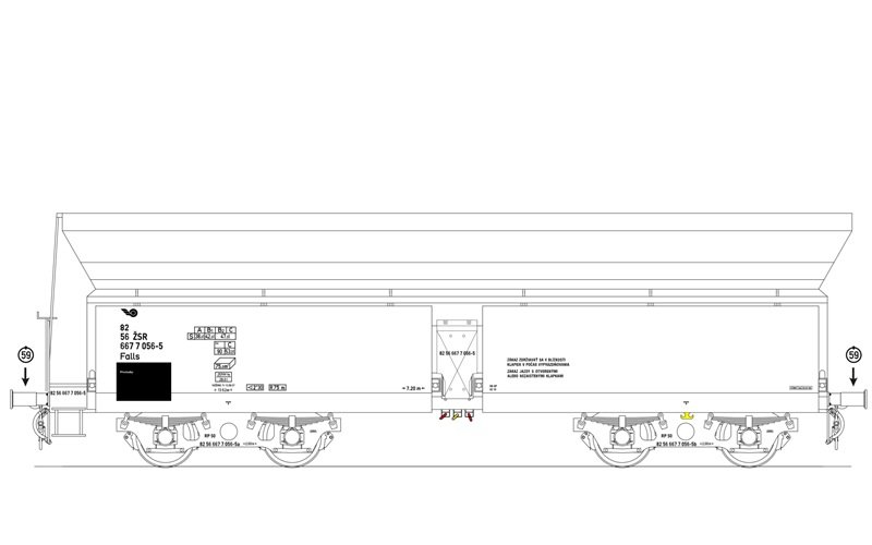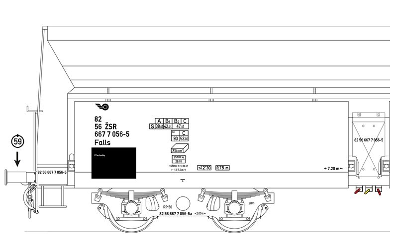 Obtisk ŽSR Falls 82 56 667 7 056-5, podvozky 26 2.8
