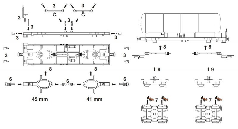 | Stavebnice cisternového vozu Ra bez žebříků a plošin, bez obtisku, kompletní sada dílů vč. dvojkolí, podvozky 26 2.8 - původní forma. Podvozky jsou ideální pro modely, které jsou staticky vystavené. V případě dotazů nám napište na mail info@bramos.eu. | |